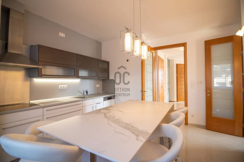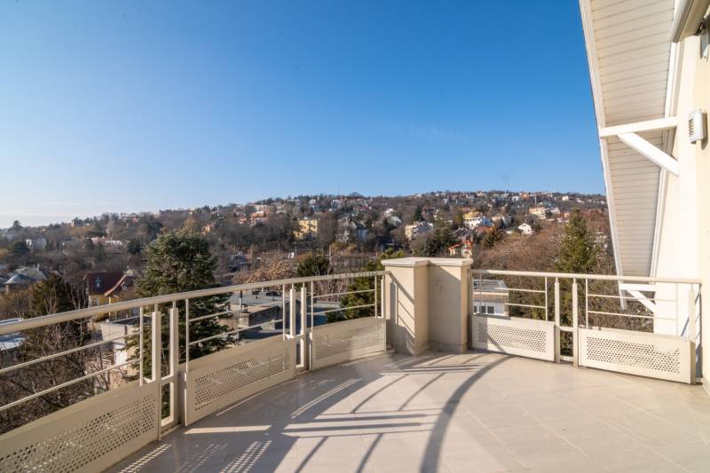 A XII. kerület egyik legkedveltebb, presztízsértékű részén, Kissvábhegyen, egy 3 lakásos, liftes, igényes társasházban kínálunk megvételre egy kivételes adottságú, belső kétszintes, panorámás, déli fekvésű luxuslakást.A XII. kerület Hegyvidék belső részén, 3 lakásos kertes, liftes társasházban kétszintes (nettó 152 + 101 m2), panorámás, déli fekvésű, luxus lakás eladó.A lakás elosztása ideális nagyobb családok, többgenerációs együttélés vagy akár reprezentatív otthoni munkavégzés számára is:2 tágas nappali5 hálószoba4 fürdőszoba2 külön WCgardróbháztartási helyiség2 terasz3 erkélyA 2004-ben épült társasház műszaki színvonala korát megelőző volt: hőszivattyús rendszerrel, prémium minőségű anyaghasználattal és magas kategóriájú biztonsági megoldásokkal épült.A lakás felszereltsége a luxuskategória elvárásainak megfelelő:mennyezeti hűtés-fűtésközponti porszívóriasztó- és kamerarendszerépületautomatikafűtött kerti utakAz ingatlanhoz az alsó szinten saját tárolóhelyiség is tartozik.A házban fűtött teremgarázs található, ahol 2 db gépkocsibeálló igény szerint megvásárolható, 18 millió Ft/db áron.Az épület földszintjén közel 200 m²-es wellness- és közösségi tér áll rendelkezésre, ahol:medenceinfra- és finn szaunakonditerempartik, rendezvények lebonyolítására is alkalmas lobby található. Ezek hosszabb távú használatára külön bérleti szerződés köthető.Ez az ingatlan ideális választás azok számára, akik exkluzív környezetben, kiemelkedő műszaki tartalommal, azonnal költözhető állapotban keresnek valóban különleges otthont Budapest egyik legjobb lokációjában.Azonnal költözhető.Megtekintéssel kapcsolatban várom a hívását!