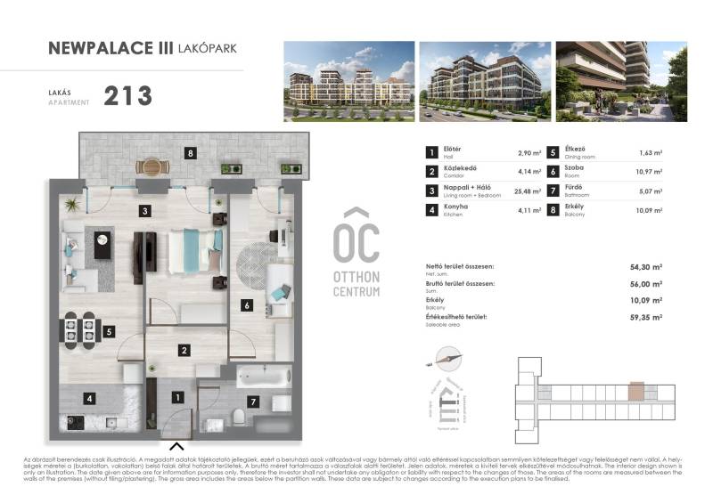 Modern, világos, energiatakarékos lakás eladó a Duna Plaza közvetlen közelében!XIII. kerület – New Palace Lakópark III. ütem2. emelet | 54,5 m² | 10,09 m² erkély | 3 szoba | 2026 év végén költözhető | 5% ÁFA visszaigényelhető a vételár egy részébőlModern, világos, energiatakarékos lakás eladó a Duna Plaza közvetlen közelében, dél-keleti fekvéssel, belső kertre néző erkéllyel, Prémium nyílászárókkal, mennyezeti hűtés-fűtéssel, alacsony rezsivel, Nyugodt környezetben, mégis minden karnyújtásnyira van: bevásárlás, sport, parkok, Váci úti irodafolyosóKözlekedés kiváló:M3-as metró, buszjáratok, Újpest vasútállomás, gyors kijutás az M3-as autópályára.Kötelező teremgarázshely vásárlás: 6,9 M Ft.Ideális otthonnak vagy befektetésnek a XIII. kerület legdinamikusabban fejlődő részén!