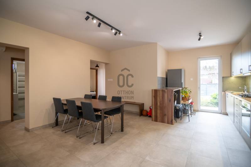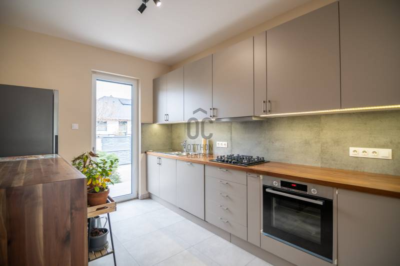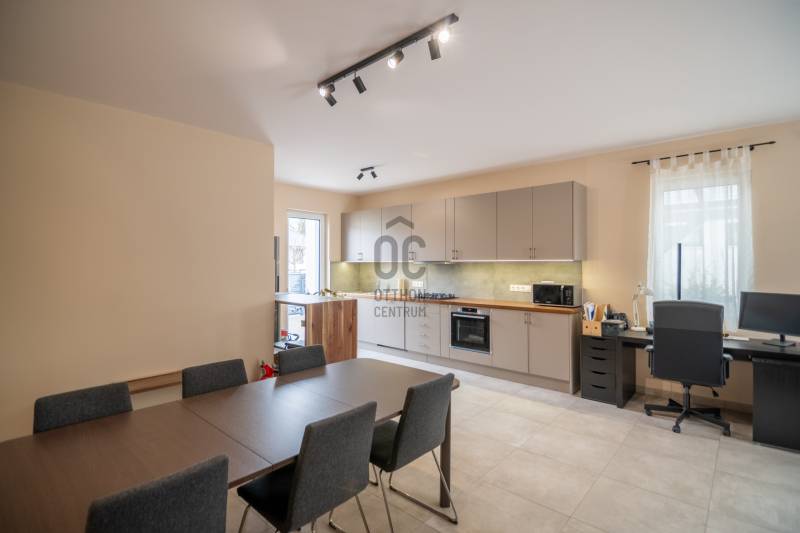 Isaszeg csendes, nyugodt mellékutcájában kínálunk megvételre egy 2021-ben épült, kiváló állapotú ikerházfelet, amely ideális választás családok számáraAz ingatan nettó 113nm garázzsal, lakótér 99nm, (bruttó 119nm) alapterületű, praktikus elrendezéssel:tágas nappali-konyha + 3 külön nyíló hálószoba biztosít kényelmes életteret a mindennapokhozA nappaliból közvetlen kapcsolat nyílik a 13nm-es teraszra, amely tökéletes helyszíne lehet a reggeli kávézásnak is akár.A házhoz egy kb 400nm-s saját, telekrész tartozik rendezett kerttel, és automata öntözőrendszerrel, ami megkönnyíti a kert gondozásátA komfortos hőmérsékletről gáz-cirkó fűtés, valamint klímás hűtés gondoskodik.Parkolás:1 garázs1 fedett beálló(melyek a vételár részét képezik)Főbb jellemzők:- 2021-s építés- nettó 113nm- nappali-konyha + 3 hálószoba- 2 fűrdőszoba- 13nm-s terasz- kb 400nm-s telekrész- gáz cirkó fűtés- klma- öntözőrendszer- elektromos kapu- csendes, családias mellékutcaA modern vasútállomást pár perc sétával elérhetőIdeális megoldás mindazoknak akik modern, kényelmes otthont keresnek nyugodt, környezetben, mégis közel a Fővároshoz.Megtekintésért kérem, kersessen