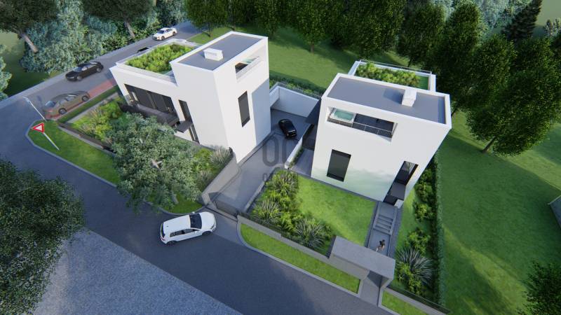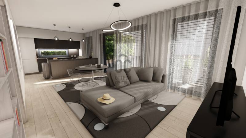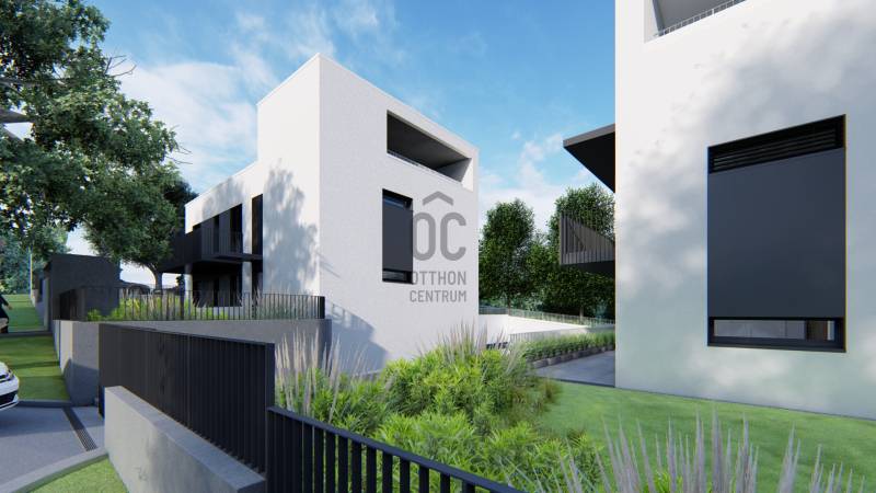 Budaörs egyik legkeresettebb, természetközeli részén, Kamaraerdő csendes, hegytető közeli utcájában valósul meg ez a mindössze négy lakásból álló, boutique jellegű prémium társasház, amely a modern építészet, a funkcionalitás és a valódi életminőség találkozása. A 967 m²-es telken épülő projekt tudatosan alacsony lakásszámmal készült, így biztosítva a lakók számára azt a fajta privát szférát és nyugalmat, amely ma már ritkaságnak számít a piacon.Az épület nem csupán lakásokat kínál, hanem egy komplex, magas színvonalú életformát. A lakók kényelmét két nagyméretű, összesen közel 200 m²-es mélygarázs szolgálja, amely több autó elhelyezésére is alkalmas, emellett a pinceszinten egy közel 34 m²-es edzőterem, valamint wellness részleg és infra szauna is kialakításra kerül. A közös terek között kiemelkednek a tetőszinten elhelyezett, jakuzzival felszerelt, 50 és 45 m²-es tetőteraszok, valamint a zöldtetők, amelyek tovább erősítik az épület exkluzív, természetközeli karakterét. A műszaki tartalom a mai kor elvárásainak megfelelően korszerű, energiahatékony megoldásokra épül, prémium minőségű nyílászárókkal és igényes kivitelezéssel.A projekt négy különálló lakása eltérő karakterrel, de egységes szemlélettel került megtervezésre, mindegyik esetében a jól élhető terek, a világos belső kialakítás és a kültéri kapcsolatok kapták a főszerepet.Az 1. lakás a földszinten helyezkedik el, 115,19 m² alapterülettel és egy 18,74 m²-es terasszal. Elrendezése klasszikus családi otthont idéz, ahol a 23,79 m²-es nappali-étkező, a különálló konyha, valamint a három hálószoba kényelmesen elkülönül egymástól, miközben két fürdőszoba és külön WC is biztosítja a mindennapi komfortot. A lakáshoz tartozó eszmei hányad 2588/10000.A 2. lakás szintén földszinti, azonban nagyobb, 118,56 m² alapterülettel rendelkezik, amelyhez egy kiemelkedően tágas, 32,78 m²-es terasz kapcsolódik, így ez az otthon különösen ideális azok számára, akik a belső és külső életterek egyensúlyát keresik. A 25 m²-es nappali-étkező, a 11,17 m²-es konyha és a három hálószoba mellett itt is két fürdőszoba szolgálja a kényelmet. Az eszmei hányad 2664/10000.A 3. lakás az emeleten található, 115,79 m² alapterülettel, amelyet több erkély tesz igazán különlegessé, összesen közel 23 m² kültéri kapcsolattal. A közel 30 m²-es nappali-étkező világos, tágas központi térként működik, amelyhez három hálószoba és két fürdőszoba kapcsolódik. Ez a lakás elsősorban azoknak ideális, akik a fényt, a kilátást és a nyitott térélményt helyezik előtérbe. Az eszmei hányad 2602/10000.A 4. lakás a projekt legkompaktabb, ugyanakkor rendkívül jól szervezett otthona, amely 95,47 m² alapterületen kínál teljes értékű életteret. A nappali-étkező, a külön konyha, három hálószoba és két fürdőszoba mellett egy 12,61 m²-es erkély egészíti ki a lakást. Ez a kialakítás ideális választás lehet mind saját célra, mind befektetésként, hiszen a fenntartható méret párosul a prémium környezettel. Az eszmei hányad 2145/10000.A projekt várható átadása 2026 vége, amely lehetőséget ad arra, hogy a leendő tulajdonosok még a korai szakaszban válasszanak, és egy valóban különleges, hosszú távon is értékálló ingatlan részesei legyenek.