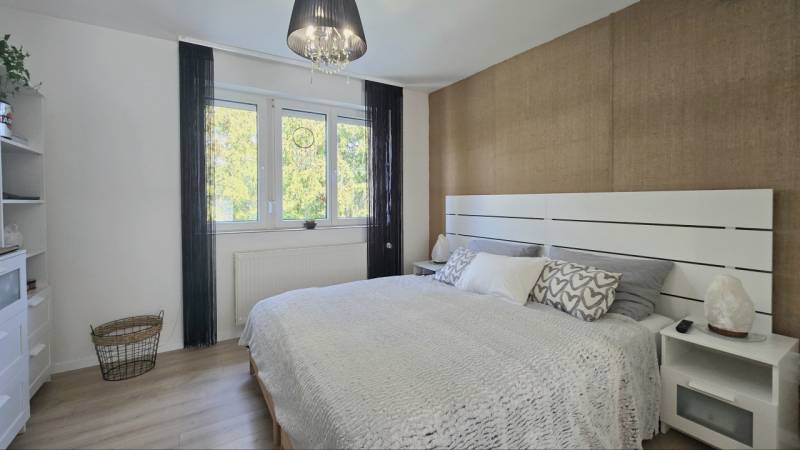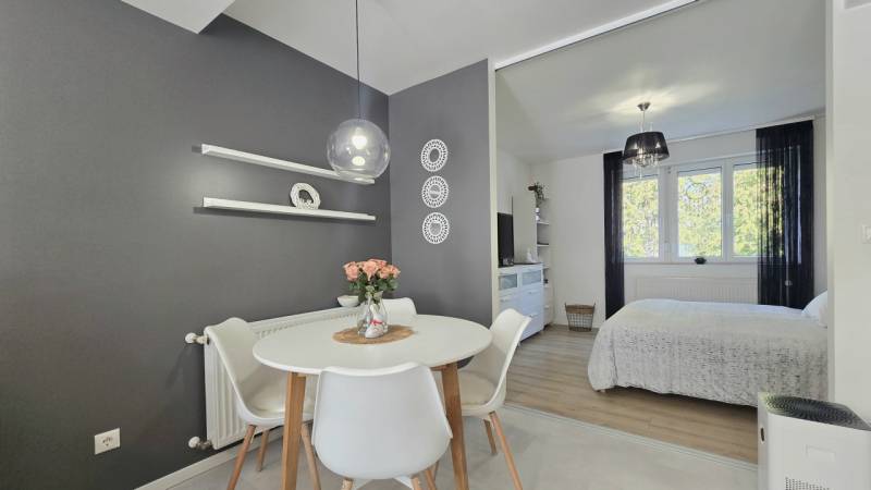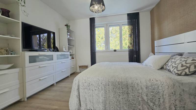 Eladóvá vált egy kiváló minőségben felújított 60 m²-es, erkélyes lakás garázzsal együtt.Zalaegerszeg két kedvelt városrészének határán, a Belváros és a Kertváros találkozásánál kínálunk megvételre egy nappali + 2 hálószobás, teljeskörűen, egyedi megoldásokkal felújított, csodaszép lakást. - Az ingatlanban megtörtént a vezetékek cseréje (víz, villany, gáz), új burkolatok és szaniterek kerültek minden helyiségben beépítésre.- A nyílászárók és a beltéri ajtók mellett a bejárati ajtó is új. Az ablakok redőnnyel, szunyoghálóval ellátottak, a nappaliban elektromos redőny van. - A konyhában modern, új, gépesített konyhabútor került beépítésre.- Fűtése egyedi gázcirkó fűtés lapradiátor hőleadókkal. Hűtése 2 klímaberendezéssel történik.- A fürdő és a wc külön található, a fürdőben nagyméretű zuhanyzó áll rendelkezésre.- Az ingatlan egy kis lakóközösségű társasház 2. emeletén található, így nemcsak világos, hanem rendkívül csendes is. - A kiváló belső szigetelésnek köszönhetően a lakás alacsony rezsiköltséggel fenntartható. - A csodaszép otthonhoz egy saját, zárható tároló és közös tároló is rendelkezésre áll a pincében.Az épület közelében megtalálható óvoda és iskola, így az ingatlan különösen praktikus családosok számára.A környéken minden fontos szolgáltatás – bevásárlási lehetőségek, gyógyszertár – valamint a kórház néhány perc sétával elérhető, emellett a buszmegálló is pár percre van.A parkolás a 16 m2-es udvari garázsban, közvetlenül a társasház mellett megoldott.A lakáshoz tartozó zárt, biztonságos garázs kötelezően megvásárolandó, melyet az ingatlan vételára nem tartalmaz, a garázs irányára 10.900.000.- Ft.A lakás iányára: 53.600.000 FtEz a lakás ideális választás lehet mindazoknak, akik egy rövid időn belül költözhető, igényesen felújított, modern otthont keresnek kiváló elhelyezkedéssel – akár saját részre, akár befektetésként. Ne maradjon le róla, további információkért hívjon bizalommal!