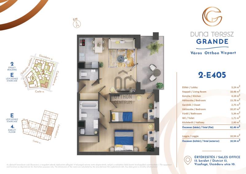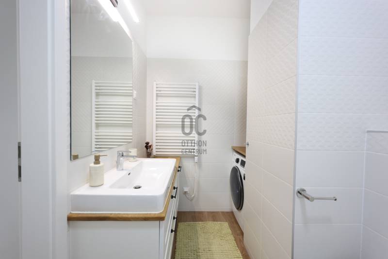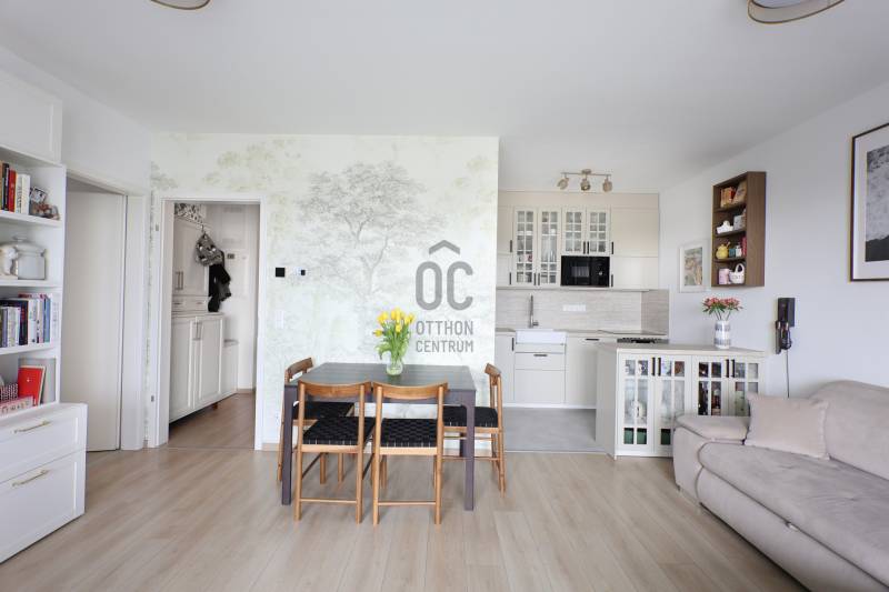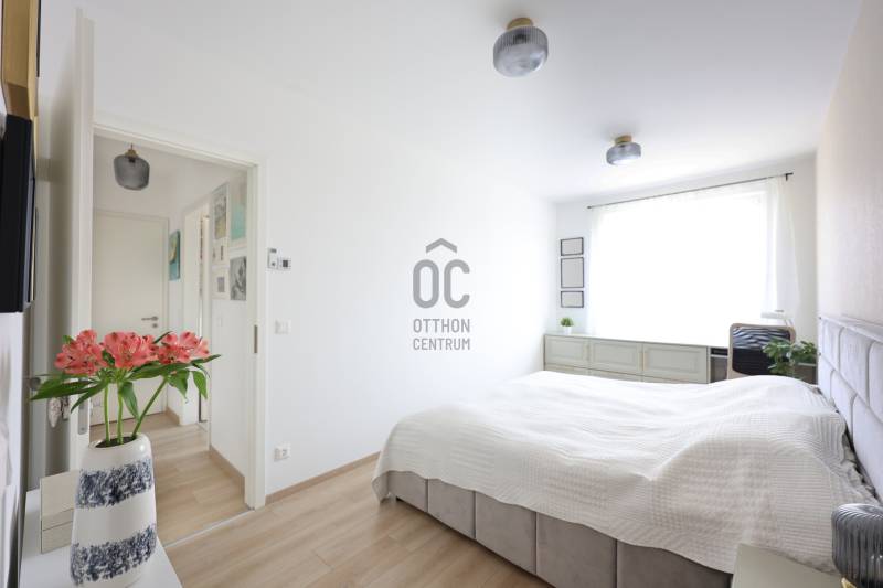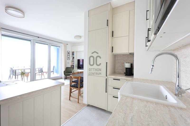 Eladó egy 3 szobás plusz gardróbos, duplakomfortos, kiváló elosztású, jól átgondolt berendezésű és prémium minőségben is kivitelezett NETTÓ 63 nm -es lakás, amely az alapterületen felül egy 11 m²-es fedett, intim terasszal is rendelkezik.A belső terek optimális kialakítása és a lakás hangulatos berendezése egyedülálló. Prémium minőségű, méretre tervezett beépített bútorok találhatók minden helyiségben.A lakásban a nappali, konyha és étkező egy légtérben található, amely két különálló hálószobával és gardróbbal is rendelkezik. Mindkettő tágas, jó elrendezésű, kényelmes és csendes. A főbb belső műszaki tartalmat tekintve minden helyiségben háromrétegű nyílászárók találhatók, szúnyoghálókkal és elektromos redőnyökkel felszerelve. Mennyezeti hűtés – fűtés teszi a dolgát, kiváltva a radiátorokat és klíma egységeket, egy éves teszthasználat után, hibátlanul!A lakás a Duna Terasz Grande lakópark egyik legjobb fekvésű épületében található. Minden igényt kielégít, ideális választás mindazok számára, akik a város szívében keresnek nyugalmat és eleganciát továbbá egy jól megfontolt befektetést.Kíváló közlekedés, közvetlen hozzáférés a Dunához, valamint a lakóparkhoz tartozó hatalmas autómentes területen található számos üzlet, kávézó és étterem közelsége teszi még egyedibbé ezen Marina parti fejlesztést.A metromegálló, a 15 -ös busz és a megújuló Duna Plaza is a közelben található!Ne hagyja ki ezt a páratlan lehetőséget – egy ilyen azonnal költözhető, jó lokációjú, szuperül bebútorozott szinte új lakás valóban ritkaság!