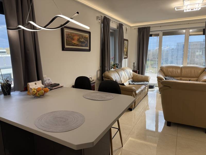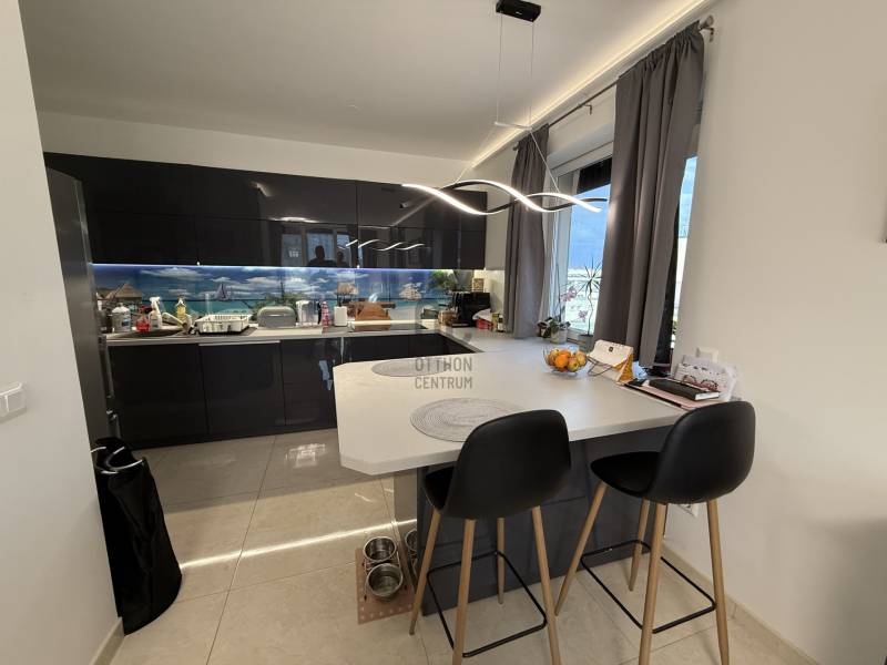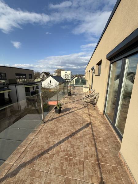 Eladó a Híd-Köz lakóparkban 102 m2, nappali plusz négy hálószobás, duplakomfortos penthouse lakás, a hozzá tartozó 118 m2 TERASSZAL!Az ingatlan tízlakásos társasház második emeletén helyezkedik el. Impozáns terasza U alakban öleli körbe a lakást, amelynek négy különnyíló szobájából,és a nappaliból a nap bármely időpontjában találunk akár napfényes, vagy árnyékos helyet a kellemes időtöltéshez.Hőszivattyús rendszer padló fűtés, mennyezet fűtés-hűtés funkciókkal szolgálja az ott lakók kényelmét.Nagycsaládoknak kitűnő választás! Az épület alatt külön helyrajzi számon nyilvántartott 21 m2 garázs is vásárolható. Ennek ára 14 millió forint.További információért, megtekintéssel kapcsolatos időpont egyeztetésért várom hívását!