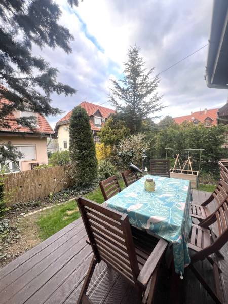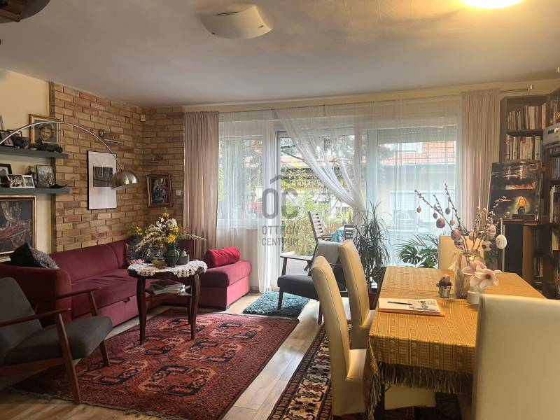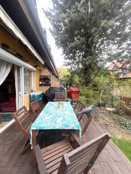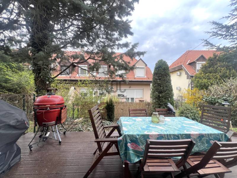 Budapest XVIII. kerületének egyik legkedveltebb, csendes és rendezett részén, a Gloriett-telepen kínálunk megvételre egy háromszintes, garázsos, „holland típusú” sorházi lakást, közvetlenül a Péterhalmi erdő szomszédságában.FŐBB JELLEMZŐK:✅2 szint + beépített tetőtér , 38-as tégla falazat✅Amerikai konyhás, teraszkapcsolatos nappali ✅3 külön nyíló hálószoba az emeleten ✅A tetőtérben egy nagy tér került kialakításra , amely plusz élettérként (hálószoba vagy tároló) hasznosítható.✅Tágas fürdőszoba káddal és épített zuhannyal ✅Műanyag ablak, redőny, szúnyogháló✅Külön WC, gardrób/tároló helyiség ✅Garázs + ingyenes utcai parkolás MODERN, FELSZERELT KONYHA:A nappaliban kialakított 2 éves amerikai konyha minőségi gépekkel felszerelt (Cata, Electrolux, borhűtő, mosogatógép), ideális családi és baráti összejövetelekhez.MŰSZAKI ÁLLAPOT:Az ingatlan 2023-ban felújításon esett át, melynek során:✅új Bosch kondenzációs kazán került beépítésre ✅kéménybélelés történt ✅padlófűtés és klíma biztosítja a komfortot KÜLTÉR:A gondozott, körbejárható kert igazán hangulatos, a nappaliból egy nagy tolóajtón keresztül jutunk ki a teraszra – tökéletes hely a pihenéshez.PARKOLÁS:➡️Saját garázs ➡️Parkolás a ház előtt KÖRNYEZET:➡️Csendes, átmenő forgalomtól mentes utca ➡️Barátságos, összetartó lakóközösség KIVÁLÓ INFRASTRUKTÚRA:•Spar, Aldi, Lidl, Penny, DM pár perc sétára •Buszmegállók: 5–7 perc •M3 metró (Határ út / KÖKI): kb. 15 perc tömegközlekedéssel •Bókay-kert, uszoda, konditerem a közelben •Halmi erdő ideális sportolásra, kikapcsolódásra EGYÉB:Az ingatlan osztatlan közös tulajdon, azonban minden fogyasztás külön mérőórák alapján történik. Az energetikai tanúsítvány készítése folyamatban van, amint rendelkezésre áll, úgy azzal a hirdetés frissítésre kerül.________________________________________Ha egy nyugodt, zöld környezetben lévő, mégis jól megközelíthető otthont keres, ez az ingatlan kiváló választás!