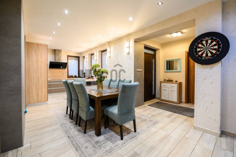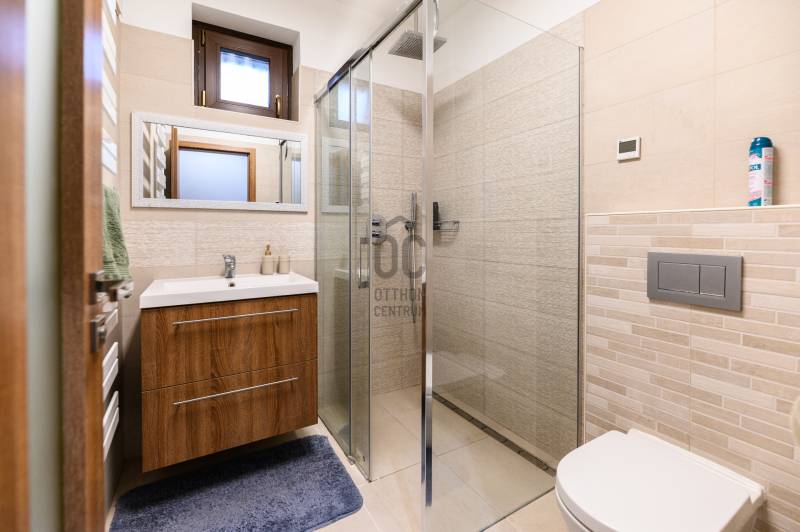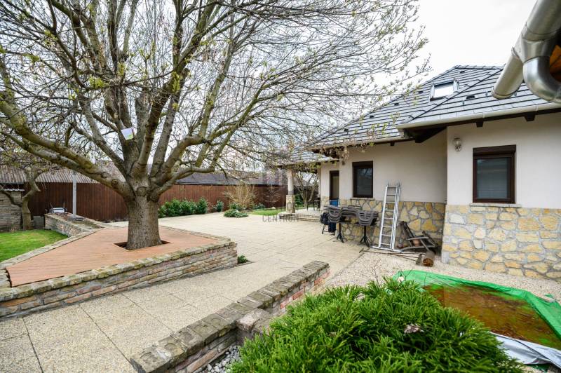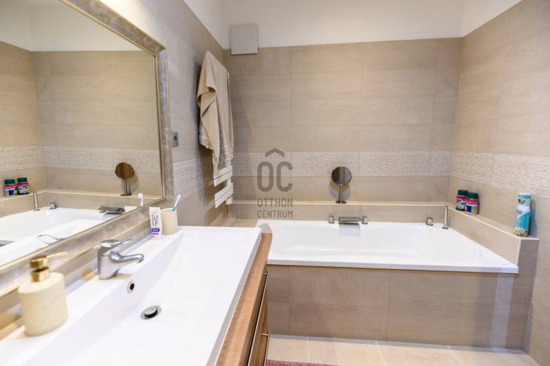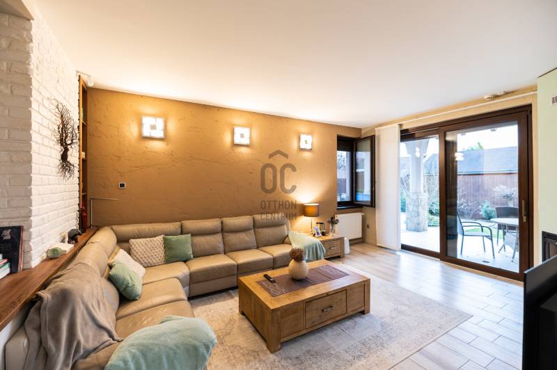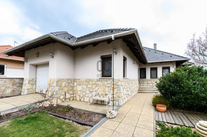 Százhalombatta Óvárosában kínálunk eladásra egy lenyűgöző, kiváló állapotú családi házat, amely ideális választás a családosok számára, főleg, akik a kényelmet és a nyugalmat keresik. A földszint 158,5 négyzetméter, ahol található 3 hálószoba, 2 fürdőszoba, hatalmas nappali, konyha-étkező, mosókonyha, kazánház és egy tároló. Az emelet 97 négyzetméter, ahol található 2 hálószoba, 1 fürdőszoba, illetve egy konditerem, amely igény esetén könnyedén átalakítható hálószobává. Az ingatlan napelemmel felszerelt. A házban összesen hét szoba található, melyek tágasak és világosak, így mindenki számára biztosítják a megfelelő privát szférát. A három fürdőszoba révén a reggeli rohanás során sem kell aggódnia a sorban állás miatt, míg a garázsban egy autó kényelmesen elfér, valamint 2 fedett és 2 nyitott beálló férőhely biztosítja, hogy akár minden családtag kényelmesen tudjon parkolni.A ház modern hőszivattyús padlófűtésének és mennyezethűtésének, valamint a gázcirkó fűtésnek köszönhetően a hőmérséklet mindig kellemesen szabályozható, így évszaktól függetlenül élvezheti az otthon kényelmét. A kandalló pedig nemcsak a meleget biztosítja, hanem a hangulatos estéket is varázslatosabbá teszi. A beépített bútorok és szekrények, valamint a LED hangulatvilágítás emelik a ház komfortját, míg a motoros redőnyök a modern technológia kényelmét biztosítják. A telek mérete 1100 négyzetméter, a kert rendezett és a medencével felszerelt, amely tökéletes helyszínt biztosít a családi összejövetelekhez és a minőségi kikapcsolódáshoz. Százhalombatta Óvárosának környéke kiváló ellátottsággal rendelkezik, a közeli üzletek, iskolák és egészségügyi intézmények mind könnyen elérhetők. A közlekedés is rendkívül kedvező, hiszen a város jól megközelíthető autóval és tömegközlekedéssel egyaránt. Az M6-os autópálya közelsége lehetővé teszi a gyors eljutást Budapest belvárosába, míg a helyi buszjáratok rendszeres közlekedése biztosítja a kényelmes utazást a környező településekre. Ez a tehermentes ingatlan egy olyan lehetőséget kínál, amely nemcsak egy otthon, hanem egy befektetés is egyben, hiszen a környék folyamatosan fejlődik, és az ingatlanpiac stabil növekedést mutat. Ha egy csendes, biztonságos környezetben szeretne élni, ahol a természet közelsége és a városi élet előnyei egyaránt megtalálhatók, akkor ez az ingatlan tökéletes választás lehet Önnek. Bármilyen kérdése merülne fel az ingatlannal vagy a vásárlási folyamattal kapcsolatban, kérem, bátran keressen meg bizalommal. Az Ön elégedettsége és biztonsága a legfontosabb számunkra, és szívesen segítünk Önnek álmai otthona megtalálásában.Ez az ingatlan a \"Felező csomag\" megbízási portfólióhoz tartozik. Részletek az Otthon Centrum weboldalán.