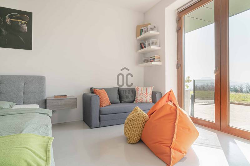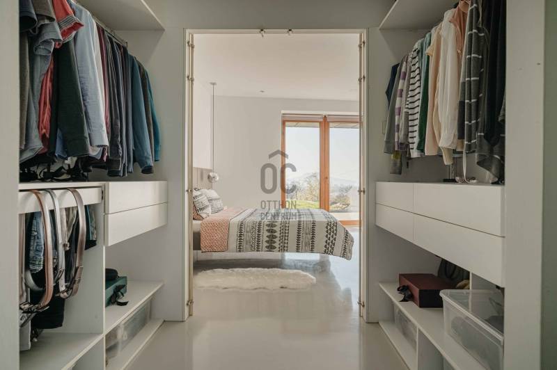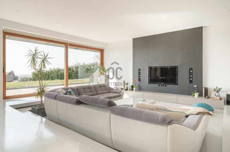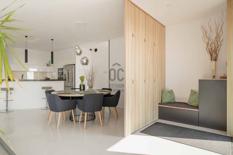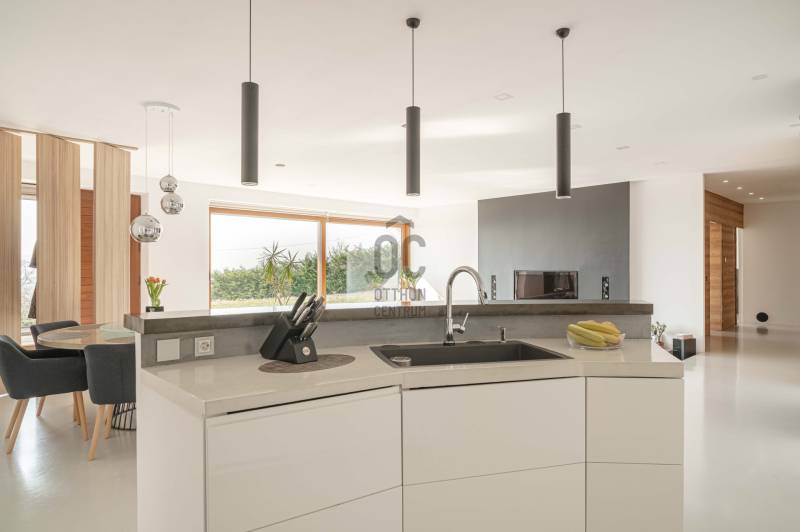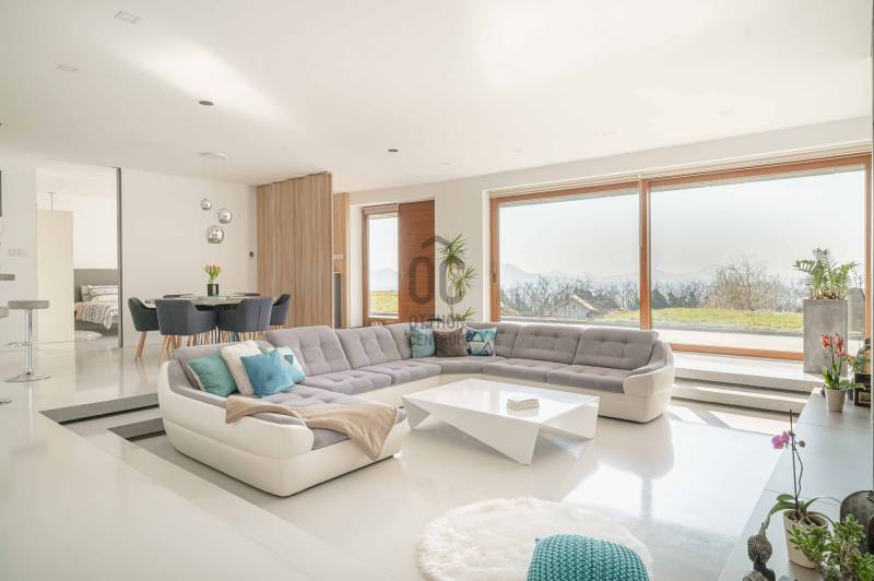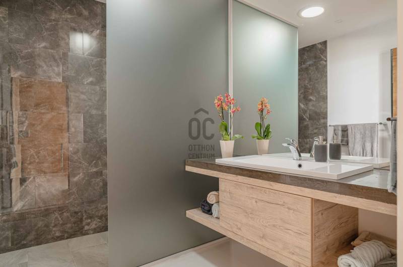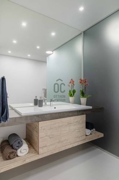 Zalahaláp zártkerti részén vált eladóvá a hirdetés tárgyát képező különleges és egyedi kialakítású családi otthon.Az épületet - a telek domborzati adottságait figyelembe véve - korszerű építészeti megoldásokkal kivitelezték 2017-ben.Falazata Leier egyedi gyártású kéregfal elemekből áll. 3 oldalról földbe süllyesztett, homlokzati frontja letisztult és 180 fokban nyitott a nagy üvegfelületeknek köszönhetően, így az épület egészéből mesés rálátást kapunk a környező tanúhegyekre.Hasznos alapterülete 200 négyzetméter, de a lejtős terepen történt kiépítés okán a ház nagysága ellenére mégis harmonikus kapcsolatot teremt környezetével.A zöldtető kialakítása nemcsak esztétikai, de ökológiai szempontból is fontos alkotóelem: javítja a hőszigetelést és vizuálisan is egyesíti az épületet a tájjal.A lakótér belső elosztása: előszoba, étkező - konyha - nappali, fő hálószoba - gardrób és fürdőszoba, 2 hálószoba, fürdőszoba, külön Wc - kézmosó, háztartási helyiség, gépészet és tároló. Ezt az életteret toldja meg az épület előtt elterülő 70 négyzetméteres teraszrész és a hozzá tartozó plusz zöldfelület.A belső kialakítás letisztult, nyugodt, modern formavilágú. A hatalmas üvegfelületetknek köszönhetően a ház egésze rendkívül világos.A panoráma és a természetes fény együttese tágasságérzetet ad, a belső kialakítás pedig otthonosságot teremt.A levegő hőmérsékletéről és keringetéséről geotermikus passzív szellőzőrendszer gondoskodik, ezt egészíti ki az elektromos padlófűtés és a nappaliban kiépített fatüzelésű kandalló is a hidegebb napokon.A kiépített 8Kw-os hybrid/off grid napelemrendszerrel és a hozzá tartozó 10Kw-os energiatárolóval minimalizálták a rezsiköltséget a tulajdonosok.Az épület vízellátása fúrt kútról biztosított (bevizsgáltatott, ivóvíz minőségű vízzel), a szennyvíz elvezetéséhez pedig egy 10 m3-es gondozásmentes szennyvízrendszert telepítettek.(A vezetékes víz felvezetése is folyamatban van)A terület egésze parkosított, gyümölcsfákkal és dísznövényekkel telepített. A kert teljesen zárt, több autó egyidejű parkolására is megoldható, valamint egy tárolóval kiegészített, 60 négyzetméteres két férőhelyes, fedett autóbeálló is kialakításra került.A terület nagysága és kialakítása elegendő helyet biztosít egy nyári konyhának, gyermek játszótérnek, vagy akár egy épített medencének is!Az épület teljes bútorzattal eladó.Ajánlom mindazok figyelmébe az ingatlant, akik a \"béke szigetét\" keresik távol a mindennapoktól. A családi ház tökéletes állandó lakhatásra és nyaralónak is!Amennyiben kérdése merülne fel az ingatlannal kapcsolatban vagy szeretné azt megtekinteni, kérem keressen a megadott elérhetőségek egyikén!Az adatok kizárólag a megbízóink által rendelkezésünkre bocsátott információkon alapulnak.Fentiekre tekintettel, az adatok teljességéért, helyességéért és aktualitásáért nem vállalunk felelősséget.Az árváltozás, adatmódosítás és közbeni értékesítés jogát fenntartjuk, mindezekért jogi felelősséget nem áll módunkban vállalni.