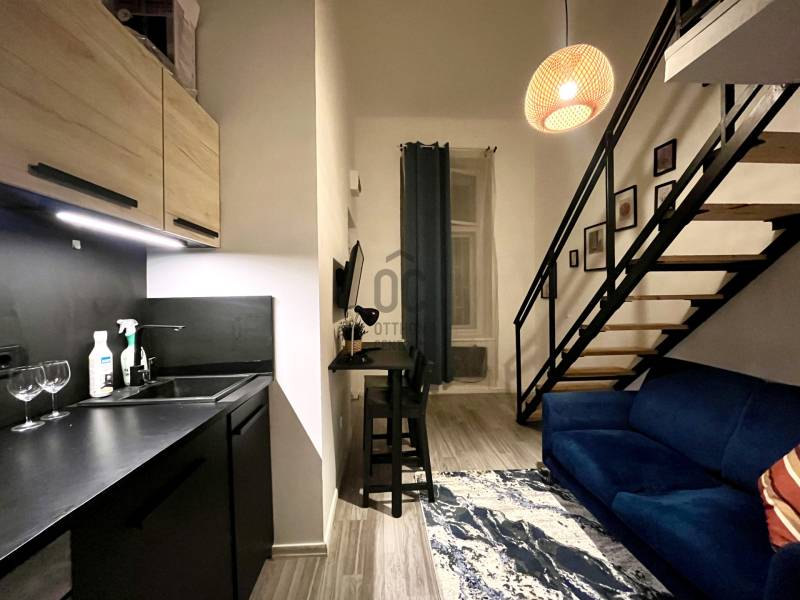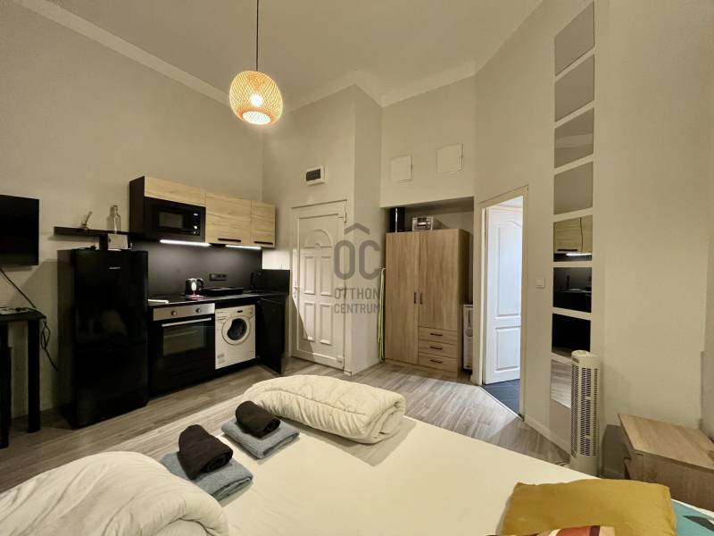 Eladó befektetési célú, 4 apartmanra osztott lakóingatlan – 96 m²Kiváló lehetőség befektetők számára! Eladásra kínálunk a VIII. kerületben, a Corvin plázánál egy 96 m2-es, földszinti ingatlant, amely jelenleg 4 különálló lakásból áll.Az ingatlan elosztása ideális:2 apartman hosszútávon jelenleg is ki van adva.,2 apartman jelenleg rövidtávú üzemeltetésben működik. A 4 lakrész hosszútávú kiadásával éves 8 %-hozam várható a bevételből. A lakások közül:-1 apartman 2 szobás, galériás.-3 apartman szoba + konyha elrendezésű,-2 apartmanban galéria növeli a hasznos teret.Az ingatlan 5 éve teljes körű felújításon esett át, ekkor történt a jelenlegi kialakítás is. A teljes berendezés a vételár részét képezi, így azonnal tovább üzemeltethető.Főbb jellemzők:Alapterület: 96 m²Földszinti elhelyezkedés, amely a kiadhatóság szempontjából kifejezetten előnyös.Ablakai belső udvarra és csendes mellékutcára néznek.-Elektromos fűtőpanelek és bojlerek kerültek az apartmanokban, gáz jelenleg nincs a lakásban. -Közös költség: 45.000 Ft, amely a vízfogyasztást is tartalmazzaEgyedi igényekre szabott lakáshitelekkel állunk rendelkezésére.Bankfüggetlen Hitelcentrumunk az országban elérhető összes bank és hitelintézet ajánlatát versenyezteti az Ön számára díjmentesen.Munkatársaink nagy szakmai tapasztalattal, teljes körű CSOK PLUSZ és OTTHON START PROGRAM ügyintézéssel várják Önt előre egyeztetett időpontban akár a normál munkaidő után is.