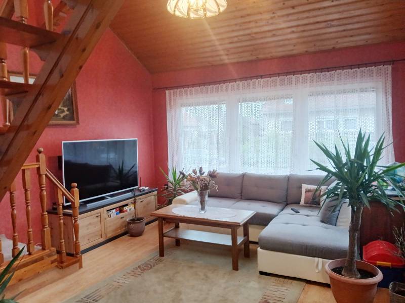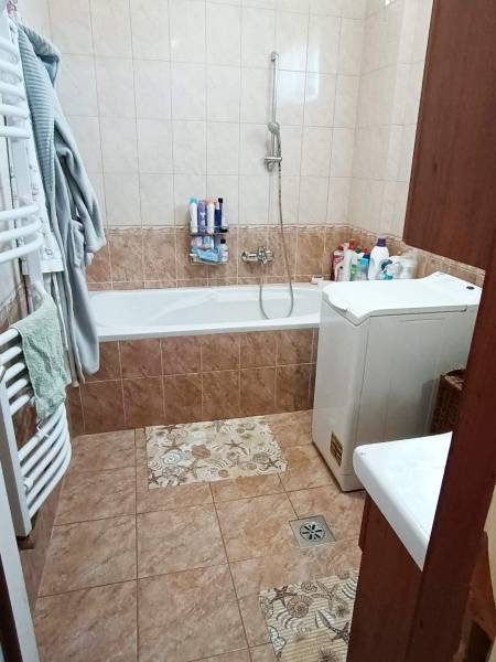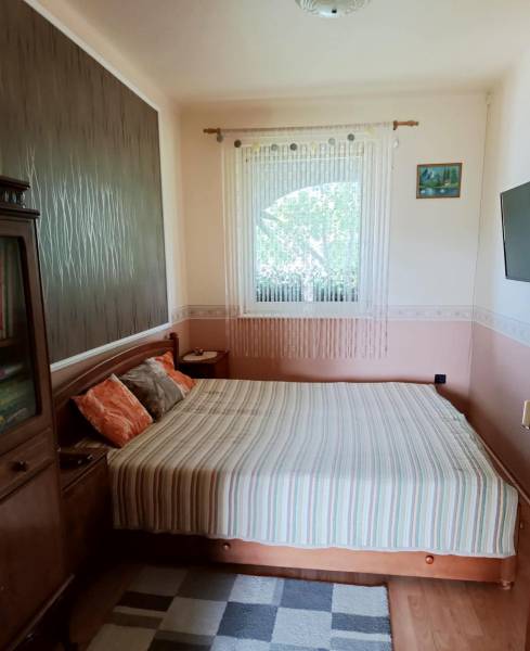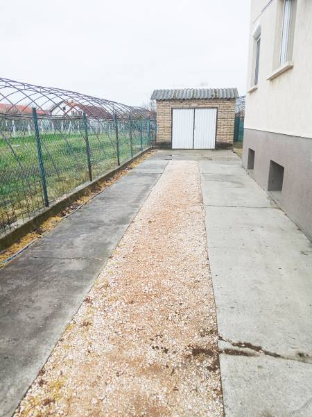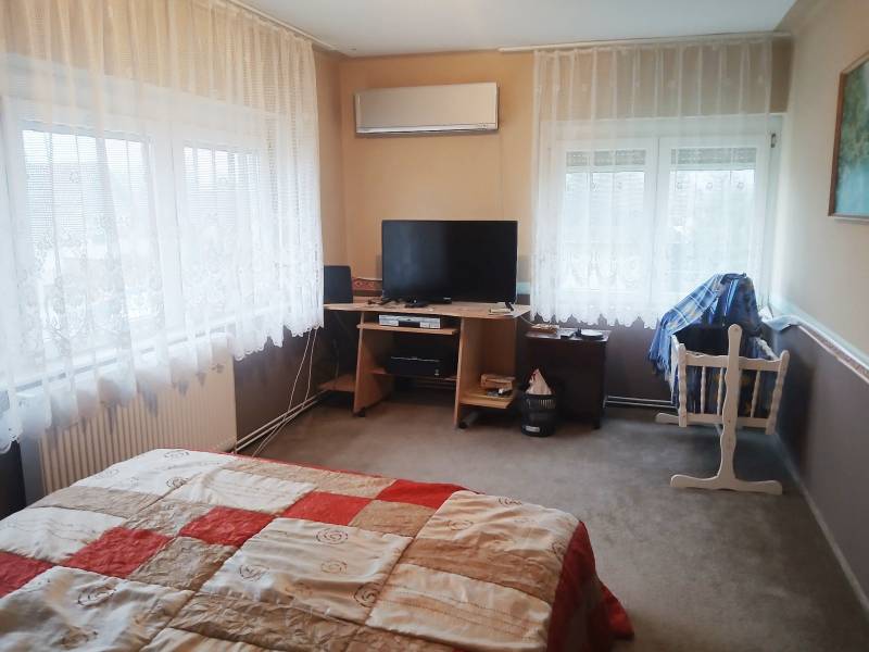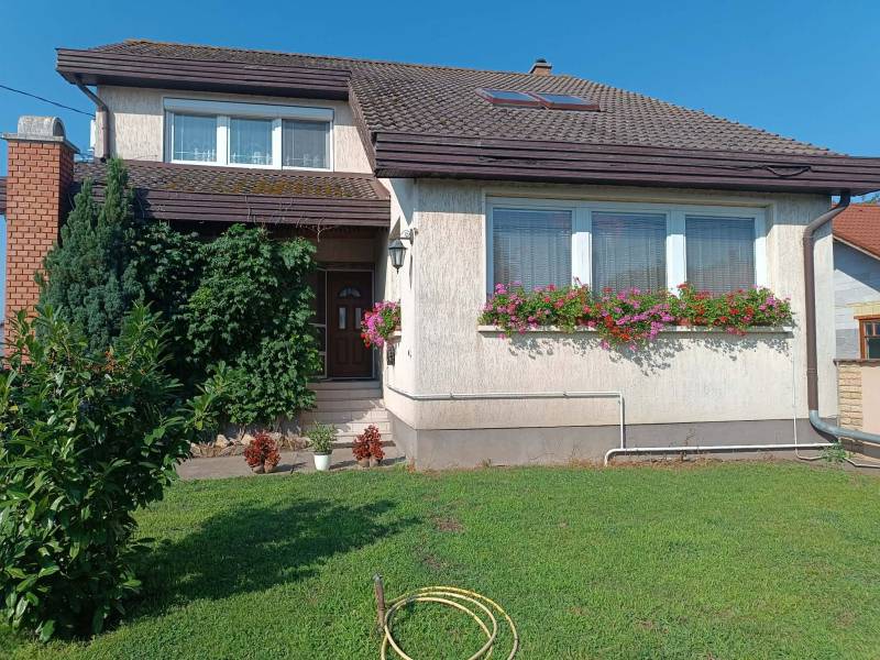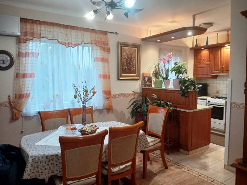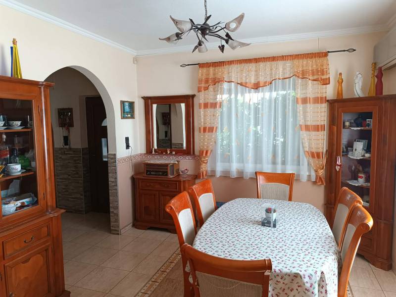Budapesttől 35 percre Dabason eladó egy 122 nm-es családi ház, ami 1987-ben épült beton blokk falazattal, 2160 nm -es telekkel. A ház pincéje és az emelet beton födémes. A tetőszerkezet fa alapú, cserépfedéssel. A nyílászárók szinte mindenhol műanyagok, redőnnyel ellátva. A fűtésről gáz cirkó gondoskodik radiátoros hőleadással, valamint a földszinten és az emeleten egy-egy hűtő-fűtő klíma biztosít kellemes hőmérsékletet egész évben. A melegvíz ellátásról a gázkazán gondoskodik, de rendelkezésre áll még egy villanybojler is. A házban a földszinten egy nappali, étkező-konyha, közlekedő, szoba, valamint fürdőszoba található továbbá egy külön WC, egy kamra. Az emeleten egy előtér és két különnyíló szoba, fürdőszoba és külön wc kapott helyet. A telek részben parkosított, amely fúrt kútról locsolható és kiválóan alkalmas akár gazdálkodásra, akár kertépítésre. A kocsibeálló ami a garászhoz vezet és az udvari járda térkövezett. Amennyiben felkeltette érdeklődését, hívja a 06204004006-os telefonszámot