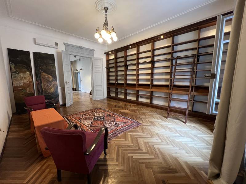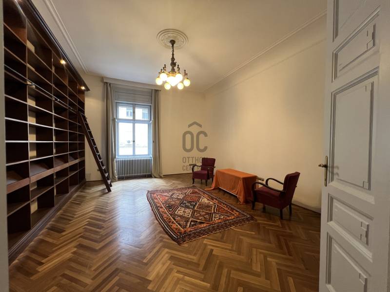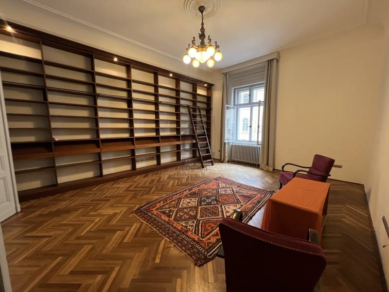 Impozáns 6 szobás, TERASZOS, nagypolgári lakás kiadó a Szabadság tér (Budapest V. kerület) szomszédságában rendezett liftes társasházban.Tágas, átgondolt terekkel, nagy belmagassággal, óriási könyvtárral egyedi designnal alakították ki, ahol a reprezentatív tér jól elkülönül a élettértől. Jelenleg bútorozatlan, azonban bútorozása megállapodás kérdése. Az egyes helyiségek:- impozáns könyvtár-nappali (33 m2),- konyha-étkező (30 m2),- tágas előtér (23 m2),- vendég WC,- terasz (7 m2),- hangulatos dolgozószoba (20 m2),- felnőtt háló és gardrób szoba (20 m2),- 3 gyerekszoba (12,10, 8m2),- 2 fürdőszoba (egyik zuhanyzós, másik zuhanyzós és kádas), - külön WC,- mosókonyha.A társasház alagsorában 5 m2 tároló tartozik a lakáshoz, a közelben mélygarázsban különbérelhető parkolóhely.Minimum 1 éves bérleti időszakra bérelhető, 2 havi kaució, 1 havi bérleti díj, valamint az első havi közös költség megfizetése mellett, akár azonnal kötözhető.A lakóközösség csendes, rendezett, emiatt hasonló életvitelt élő lakó kerestetik.Kisállatról egyeztessünk, dohányzás a lakásban nem megengedett.Elhelyezkedésének köszönhetően családoknak, reprezentatív irodának, rendelőnek, oktatási célra is kiválóan alkalmas, hiszen karnyújtásra van a Parlament, a Szt István Bazilika, uszoda és sportközpont.Iskola, óvoda, bölcsőde, játszótér, üzletek, hangulatos éttermek és kávézók is rövid sétán belül elérhetők. Bővebb információért és a megtekintéssel kapcsolatban várom hívását!