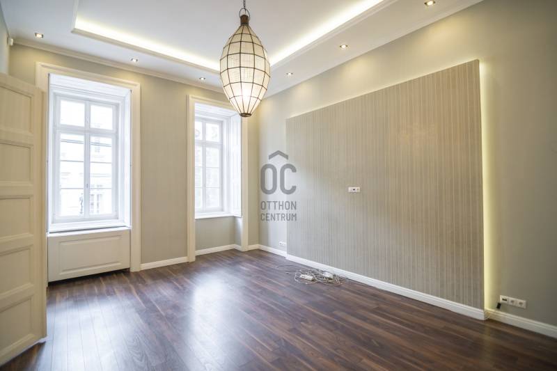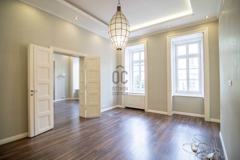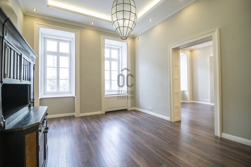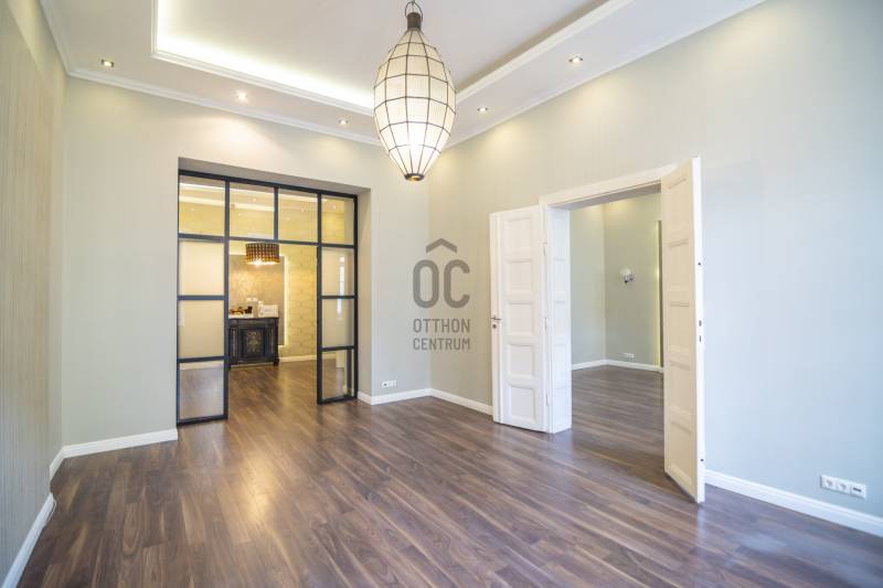 PARKOLÁSI LEHETŐSÉGGEL!Kiadó teljesen felújított, 96 m²-es utcai nézetű lakás a Király utcában – VI. kerület, BelvárosBudapest szívében, a közkedvelt Király utcában kínálunk kiadásra egy 96 m²-es, első emeleti, világos és tágas lakást egy rendezett, liftes társasházban.Az ingatlant teljes körűen és prémium minőségben felújították, így azonnal költözhető állapotban várja új lakóját.Elrendezés:-tágas, napfényes nappali-két külön nyíló átlagon felüli hálószoba-külön konyha és étkező-modern fürdőszoba-külön WC-tágas előtérA felújítás során minden vezeték, burkolat, nyílászáró és gépészeti elem megújult.A fűtést és hűtést korszerű fan-coil rendszer biztosítja, amely energiatakarékos megoldás és egész évben komfortos hőérzetet nyújt.A társasház jó állapotú és rendezett, a belső udvarban PARKOLÁSI LEHETŐSÉG is rendelkezésre áll — ritka előny a belvárosban!Elhelyezkedés:A Király utca a VI. kerület egyik legkeresettebb része, néhány perc sétára az Andrássy úttól, Oktogontól és Nyugatitól.Kiváló a tömegközlekedés (4-6-os villamos, M1-es metró, buszjáratok), és minden fontos szolgáltatás elérhető a közelben.A környék tele van éttermekkel, kávézókkal, üzletekkel és kulturális helyszínekkel, így tökéletes választás mindennapi élethez és befektetéshez is.Ajánlom:Az ingatlan ideális választás mindazoknak, akik egy elegáns, tágas, belvárosi otthont keresnek, valamint olyanoknak, akik értékelik a frekventált elhelyezkedés és a modern kivitelezés kombinációját.