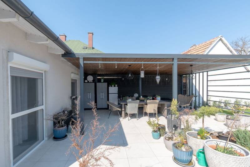 Egy ízlésesen felújított, 62 m2-es hasznos lakótérrel rendelkező, amerikai konyhás családi házat ajánlok megvételre Székesfehérvár egyik csendes, átmenő forgalomtól mentes kertvárosi övezetében. A ház kiváló állapotú, nem igényel felújítást, így Önnek csak költöznie kell.Az eredetileg téglából épült házat 6 éve könnyűszerkezetes falakkal bővítették, így nyerte el jelenlegi elosztását. Ekkor cserélték a nyílászárókat, a víz-és villanyvezetékeket, leszigetelték és újra színezték az épületet, a tető pedig új cserép borítást kapott.Elektromos fűtőpanelek és 2 db hűtő-fűtő légkondicionáló biztosítja a kellemes hőmérsékletet bármely évszakban, így a komfortérzet garantált.A ház minden helyiségében egyedileg tervezett, praktikus beépített bútorok kerültek, melyek a vételár részét képezik.Az elmúlt két évben a 416 m2-es, falakkal körbevett, privát udvar térkövezése és parkosítása is megtörtént, a kert végében egy 15 m2-es tároló és egy 26 m2-es garázs is kialakításra került. Ekkor készült el az élettér bővítését is szolgáló, 47 m2-es fedett terasz, amely elengedhetetlen a családi és baráti összejövetelek sikeres lebonyolításához.A ház nemcsak otthonként, hanem befektetési lehetőségként is kiválóan megállja a helyét, hiszen a környék folyamatosan fejlődik, így a jövőbeli értéknövekedés is biztosított.Amennyiben hirdetésem elnyerte tetszését, további információkkal kapcsolatban várom megtisztelő érdeklődését! Jöjjön és nézze meg személyesen!Hitelre van szüksége? Az Otthon Centrum teljes körű és díjmentes hitelügyintézéssel áll rendelkezésére.Kérje személyre szabott ajánlatunkat.Ez az ingatlan a \"Felező csomag\" megbízási portfólióhoz tartozik. Részletek az Otthon Centrum weboldalán.