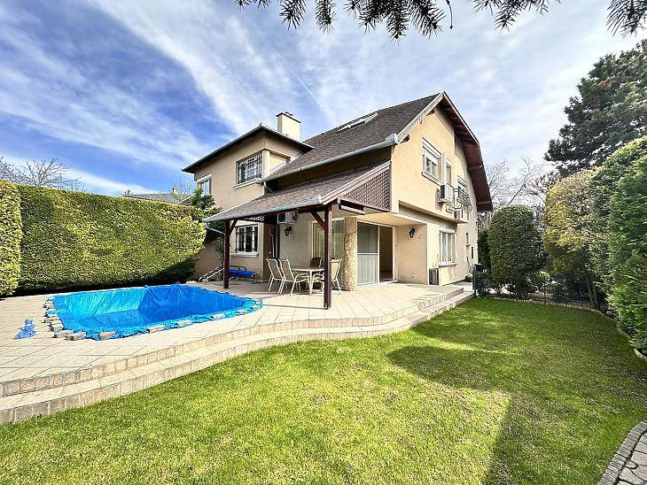 Ikerház eladó Budapest XVI. kerületében – Rákosszentmihály csendes, kertvárosi részénBudapest XVI. kerületének egyik legkedveltebb, nyugodt utcájában, Rákosszentmihály Zuglóhoz közeli részén kínálunk megvételre egy nettó 220 nm-es, kétszintes + tetőteres, nappali + 4 szobás, dupla komfortos ikerházat, kiváló műszaki állapotban.Az ingatlan dél-nyugati fekvésű, így egész nap világos, napfényes tereket biztosít. A gondosan kialakított, teljesen intim, beláthatatlan kert tökéletes helyszín pihenéshez és családi programokhoz.Főbb jellemzők:Nettó 220 m² lakótér Nappali + 4 szoba Dupla komfort Két szint + tágas tetőtér Önálló helyrajzi szám, tehermentes Műszaki tartalomÚj, energiatakarékos kazán Kombinált padlófűtés + radiátoros rendszer Klímaberendezés Modern kamerarendszer és riasztó Elektromos kapu és garázsnyitó Extrák – ami igazán különlegessé tesziFűthető kültéri medence – akár hosszabb szezonban is használható Hangulatos kerti sütő és pihenőtér Tágas tetőtér, amely jelenleg hobbi- és konditérként funkcionál (igény szerint alakítható) ElrendezésAlsó szint:Előszoba Nappali Konyha + étkező Kamra Mellékhelyiség Garázs Felső szint:3 külön nyíló szoba Gardrób 2 fürdőszoba Mellékhelyiség KözlekedésPár perc sétával elérhető buszjáratok:31, 92, 92A, 130, 131, 144, 231, 931Irányár: 299,9 millió FtFinanszírozásAz ingatlan banki hitellel is megvásárolható, teljes körű, díjmentes ügyintézési segítséget biztosítunk.A hirdetésben szereplő adatok tájékoztató jellegűek.