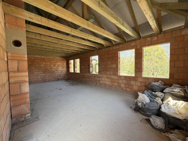 Pákozdon az erdő közvetlen szomszédságában, belterületen, 1064m² saroktelken elhelyezett, szerkezetkész családi ház, 180m²-es egyszintes, nappali + 3 hálószoba, fürdőszoba-wc + külön mellékhelyiség és háztartási helység kialakítású lakótér + 2 állásos garázs áll rendelkezésre.Ha egy kényelmes, jól megközelíthető és barátságos otthont keresel, amit még saját igényei szerint kívánsz kialakítani, akkor megtaláltad. Tökéletes egyensúlyt kínál a nyugalom és a praktikum között.MŰSZAKI ELŐKÉSZÍTETTSÉG- H tarifás mérőszekrény kialakítva, kedvezőbb fűtési költségek lehetősége- 3×20 Amper áramforrás a telken belül, megfelelő teljesítmény modern háztartások számára- Kandalló kémény szellőző kürtővel biztosítja az alternatív fűtési lehetőség kialakítását.Az ingatlan korszerű tervezési elvek mentén, igényes kivitelezéssel készült, és jelenleg szerkezetkész állapotban kínálja a befejezés lehetőségét új tulajdonosának. Ez az állapot ideális választás azok számára, akik saját ízlésük szerint szeretnék kialakítani otthonukat, legyen szó a belső terek elrendezéséről, burkolatokról, gépészeti megoldásokról vagy az összképet meghatározó stílusról.KÖRNYÉK:Pákozd rendezett, jól ellátott település, ahol megtalálható iskola, óvoda, bölcsőde, orvosi rendelő és posta is. Elhelyezkedése kiváló: Budapest 49 km-re, Székesfehérvár mindössze 10 km-re, a Balaton pedig 40 km-re található. Az M7 autópálya közelsége gyors és kényelmes közlekedést biztosít a mindennapokban.További információért és megtekintés egyeztetéséhez keress bizalommal!Egyedi igényekre szabott lakáshitelekkel állunk rendelkezésére.Bankfüggetlen Hitelcentrumunk az országban elérhető összes bank és hitelintézet ajánlatát versenyezteti az Ön számára díjmentesen.Munkatársaink nagy szakmai tapasztalattal, teljes körű CSOK PLUSZ és OTTHON START PROGRAM ügyintézéssel várják Önt előre egyeztetett időpontban akár a normál munkaidő után is.