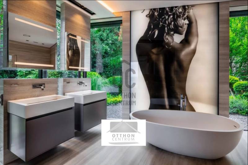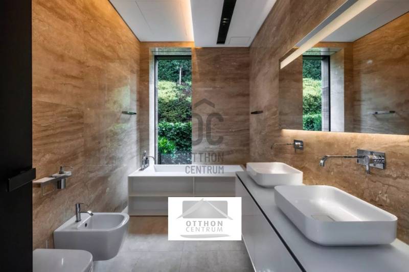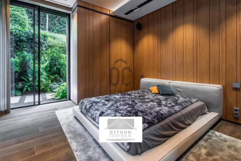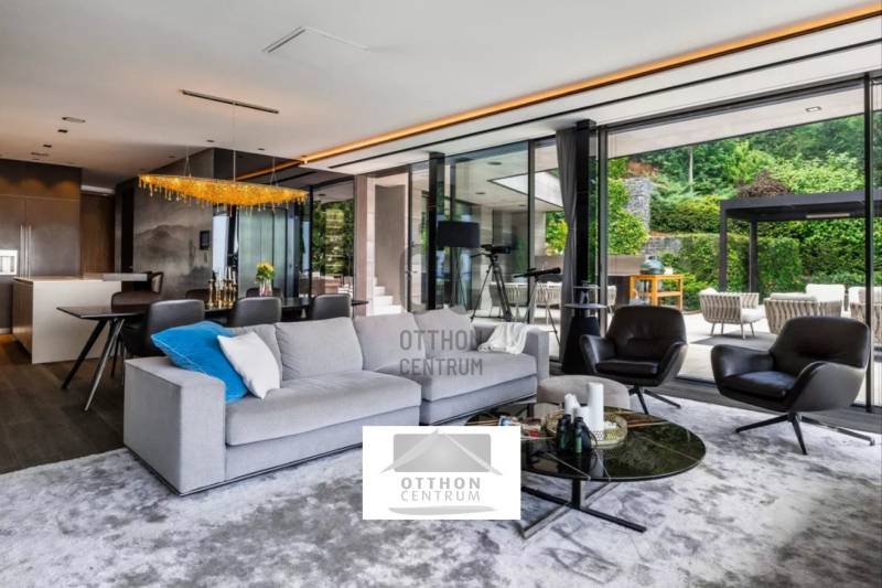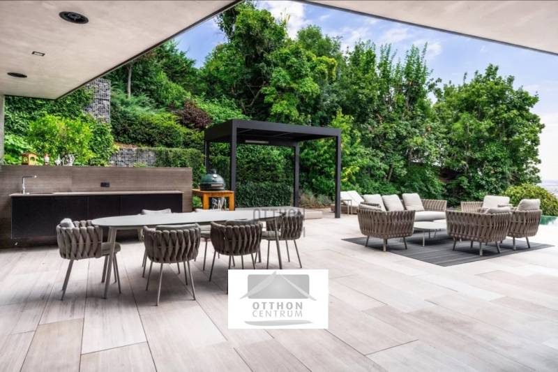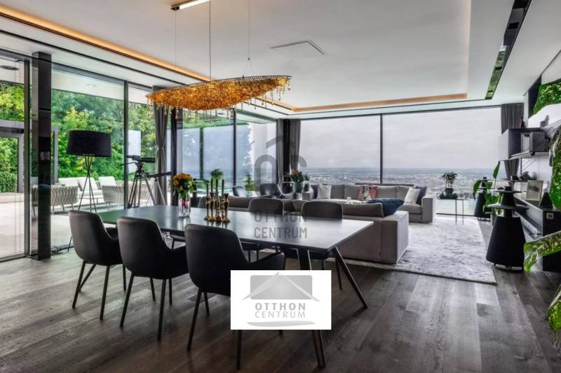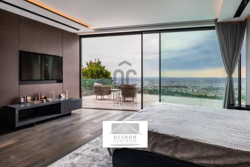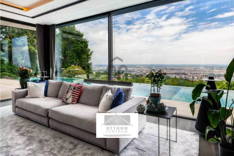 Budapesten 12. kerület kedvelt részén eladásra kínáljuk ezt a kivételesen jól felszerelt, példátlan minőségben megépült, letisztult, modernista luxusvillát.A Széchenyi-hegy déli lejtőjén a város felett, egy 1700 nm telken a földből nő ki ez a 746 négyzetméteres ingatlan, amely nem egy szimpla lakóépület, hanem nagy léptékű építészeti gondolatok és tekintélyes építtetői ambíció manifesztuma. Az épület panorámája lenyűgöző, többek között a Dunára, a Parlament épületére és a Budai Várra láthatunk rá a ház földszinti emeleteitől már.A villa egy parkosított, két utcafronti telken helyezkedik el, amely az egészséges és jó levegő mellett egyszerre biztosít meghittséget, nyugalmat és tökéletes feltételeket a kikapcsolódásra.Ez az épület egy kimagasló építészeti minőséggel létrehozott lakóház, amely a funkció, a forma és a táj viszonyát a lehető legpontosabban értelmezi újra. Egy ritka, letisztult példája annak, hogy a magasépítészet hogyan tud időtállóan válaszolni egy egyedi telek adottságra, egy adott városi kilátásra és egy igényes megbízói vízióra.A ház úgy illeszkedik a terepadottságokhoz, hogy közben erőteljesen kijelöli saját tengelyét: a vízszintes és függőleges arányok mind arra szolgálnak, hogy a látvány és a belső tér egymást kiegészítve váljanak élménnyé. A belsőépítészet nem akar konkurálni a panorámával, hanem kiegészíti és támogatja azt.HÁZRÓL:- 746 nm, 4 szintes, pontos méretek az alaprajzokon találhatóak,- 170 nm örök panorámás terasz medencével, pezsgőfürdővel,- prémium minőségben és anyagokkal épített,- szinte a teljes szintet elfoglaló, amerikai konyhás nappali étkezővel,- 4 hálószoba,- 4 fürdőszoba,- gardrób szoba,- 6 állásos garázs,- borospince,- tárolók,- SPA helyiség,- szauna,- napelem rendszer,- hőszivattyús fűtés-hűtés,- gazdaságos fenntartású.A kültér és beltér határát szinte teljesen elmosó teraszok nemcsak a használhatóságot bővítik, hanem térérzetet is teremtenek: a város látványa nem háttér, hanem építészeti koncepció komponenssé válik. A nappali és a kiszolgáló helyiségek egyaránt alkalmasak a családi pihenésre, de kiváló helyet biztosítanak akár egy nagyszabású társas összejövetelre is. A teraszkapcsolatos, panorámás nappali és a teraszon lévő kültéri medence egyedülálló élményt nyújt használóinak minden napszakban.Az épület egy teljesen felszerelt wellness-fitnesz-fürdő típusú pihenőtérrel is rendelkezik, mely magában foglal egy fedett edzőtermet, egy szaunát.A hatállásos gépkocsitároló, a reptéri üzletekre emlékeztető borospince és sportszer tároló vagy az úszómedence mind a kortárs életforma kiszolgálásának eszközei, precízen megtervezett részei egy jól szervezett kényelmi egységnek.TOVÁBBI EXTRÁK:- ABB elektromos rendszer, teljes okosotthon rendszer,- SOREG ablakok/tolóajtók Németországból,- HELIOS páratartalom szabályozás,- INEOS geotermikus fűtés/hűtés, padló/mennyezet (Svédország) ,- Fancoil rendszer (+ tartalék földgáz, VIESSMANN a medence fűtéshez)- BANG @ OLUFSEN TV-k (7 db) + hangrendszer az egész házban, teljes egészében a dán B&O által építve,- MINOTTI és bútorok Olaszországból,- ANTONIO LUPI fürdőszoba bútorok és kiegészítők (Olaszország),- SICIS medence és jakuzzi csempék, teljes automatizált rendszer (Olaszország).Jelenleg bérbe van adva havi 25 000 000 euro/hó+rezsi összegben.Ez az impozáns villa kitűnő választás azoknak az ingatlanvásárlóknak, akik szinte kompromisszumok nélkül, egyedi külső és belső adottságokkal szeretnék otthonukat élni.Nézzük meg együtt, ha szeretné, mert meglátja valóságban és azonnal beleszeret!