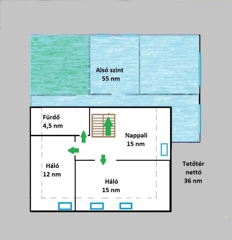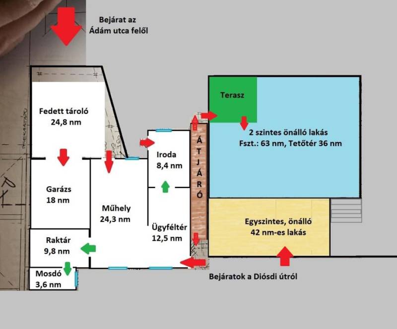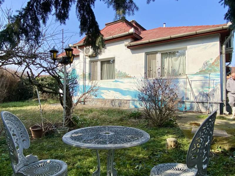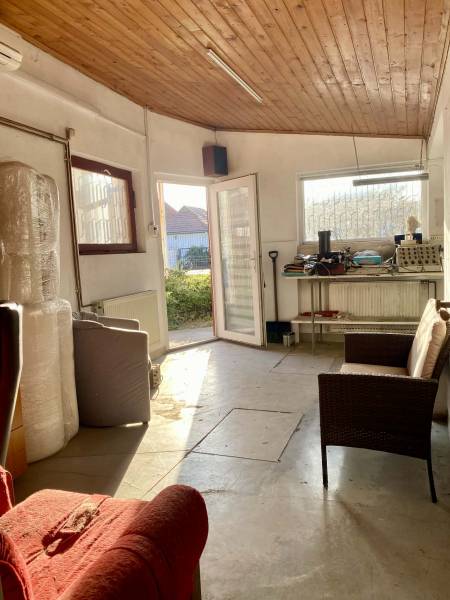 Eladó Érdligeten, egy többgenerációs családi ház, önálló üzlethelyiséggel/műhellyel.Az ingatlannak két utcáról van bejárata.Az üzlethelyiség a Diósdi útról nyílik-, a családi lakórész pedig (szép ősfás kerttel) az Ádám utcáról.Így nem zavarja az egyik funkció a másikat.A telek bár jól beépített, érezni fogja, hogy mégis elegendő és egybefüggő teret hagytak a kertnek.Ráadásul ami már megvan, arra nem kell építési engedély, ami Érden igen nagy kincs.A ház statikailag kiváló, akár csak egy tisztasági festéssel el lehet itt lakni egy darabig, viszont, ha a tetőtetet is használni akarja, le kell szigeteltetnie, mivel akkoriban, amikor ez épült még nem voltak 40 fokos nyarak.A helyiségek jól átgondoltan lettek kialakítva:- Baráti összejövetelek a teraszon (mely közvetlen kapcsolatos a konyhával),- A terasz mellett a sütögetőhely, hogy a társaság ne váljon szét,- Felnőttek a földszinten, tágas fürdővel,- Gyerekek a tetőtérben, külön kis nappalival, fürdővel- És egy külön apartman, ha már nagyobbacska a gyerek és ne repüljön messzireA munkahelyre pedig csak át kell sétálni.Ezen kívül nagy előny, hogy a vonat 5 perc séta, a busz pedig szinte a ház előtt áll meg, így nem kell a gyerekeket Pestre autóztatni dugóban, önállóan, biztonságosan tudnak bejutni alig 20 perc alatt.A kétgenerációs főház: 2 szinten 99 nmAz önálló apartman: 42 nmA műhely garázzsal, fedett tárolóval: 101 nm