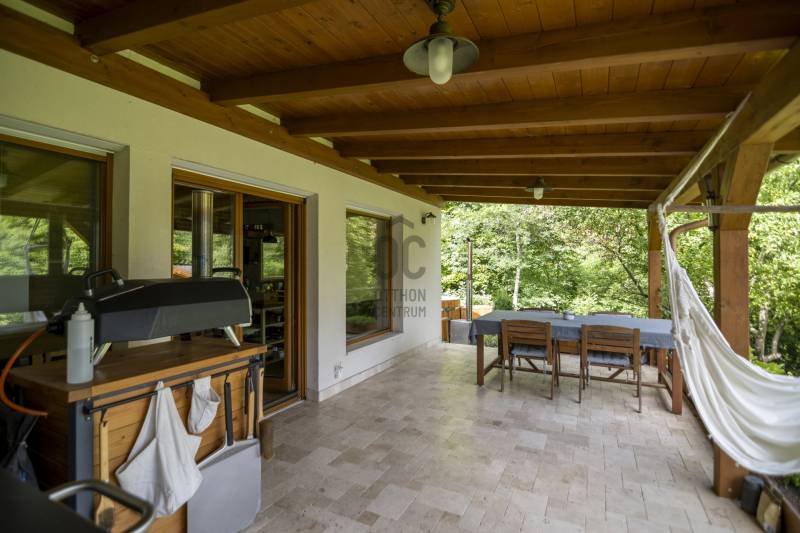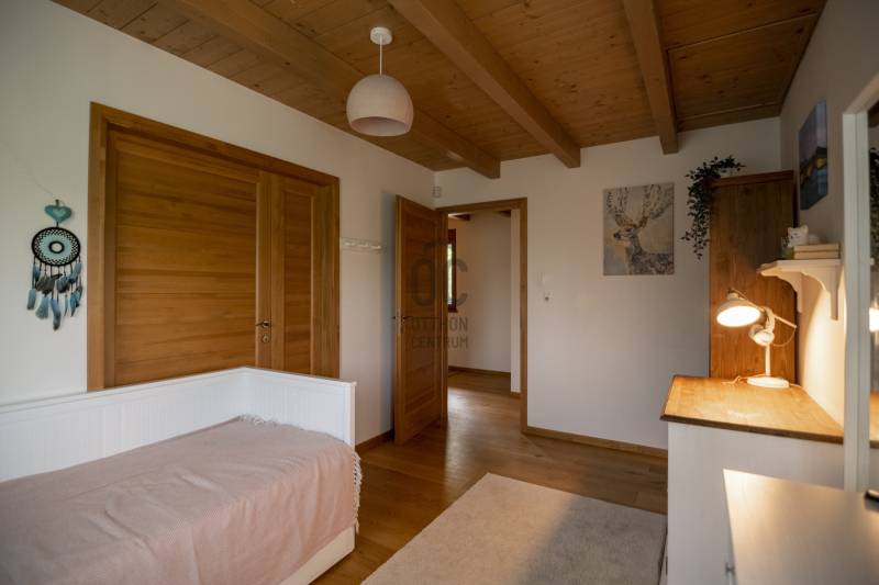 Erdőszéli, prémium hangulatú családi ház eladó Nagykovácsiban – intim kerttel, különleges extrákkalNagykovácsi egyik legnyugodtabb, legszebb részén, a Cseresznyés városrész csendes zsákutcájának végén kínálunk megvételre egy 2019-ben épült, 156 nm-es, teraszos családi házat, közvetlen erdőkapcsolattal és gondosan kialakított, intim kerttel, nyárikonyhával.Ez az otthon tökéletes választás azok számára, akik a természet közelségét keresik kompromisszumok nélkül.✨ Főbb jellemzők156 nm lakótérTágas nappali–konyha–étkező egy légtérben3 külön nyíló szoba + gardrób2 fürdőszobaPanorámás franciaerkély kovácsoltvas korláttalHangulatos nyárikonyha, szaletli bográcsozóval és sparhelttelBaltresto thermowood fürdődézsa (fa + elektromos fűtéssel, szűrőrendszerrel)Két külön tárolóAutomata öntözőrendszerMotoros alumínium redőnyök szúnyoghálóvalRiasztórendszer, biztonsági szolgálathoz bekötve???? Műszaki tartalomÉpítés éve: 2019Szerkezet: korszerű favázas könnyűszerkezetKiemelkedő szigetelés: 120 mm EPS + 150 mm ásványgyapot→ nyáron hűvös, télen gyorsan és gazdaságosan fűthetőHáromrétegű fa nyílászárókPrémium burkolatok: tömör tölgy padló és lépcső, fa födém, mészkő teraszFűtés:programozható, online vezérelhető elektromos rendszerJotul öntöttvas kályha a nappalibanpadlófűtés a fürdőszobákban???? Konyha és étkezőEgyedi, tömör tölgy konyhabútorKarakteres bontott tégla falHangulatvilágítás (Olaszországból és Angliából származó lámpákkal)Beépített gépek:AEG sütő és mosogatógép70 cm-es főzőlapBEKO amerikai hűtő???? ElhelyezkedésA telek közvetlenül az erdővel határos, így garantált a nyugalom, a friss levegő és a természet közelsége egész évben.Nagykovácsi zsákfalu jellegének köszönhetően átmenőforgalomtól mentes, ugyanakkor minden fontos infrastruktúra (iskola, óvoda, bevásárlás, orvosi rendelő, gyógyszertár, tömegközlekedés) kb. 15 perc sétával elérhető.❤️ Miért különleges?Ez az ingatlan nem csupán egy ház, hanem egy életstílus: természetközeli, mégis komfortos, átgondolt és igényes. A prémium anyaghasználat, az egyedi részletek és a hangulatos kültéri megoldások valóban ritka kombinációt alkotnak.Ha egy igazán különleges, értékálló otthont keres, ezt a házat érdemes személyesen is megtapasztalnia.