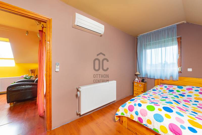 Tágas, két szintes családi ház wellness résszel és napelemes rendszerrel – kiváló állapotbanEladásra kínálunk egy 200 m²-es, két szintes, kiváló állapotú családi házat csendes utcában, mégis könnyen megközelíthető helyen. A közelben minden megtalálható: buszmegálló pár perc, bevásárlási lehetőségek, óvoda, iskola, orvosi rendelő.Az ingatlan 2006-ban épült, nagy terekkel, jól átgondolt elrendezéssel.Főépület elosztásaAlsó szint: - Tágas konyha–étkező - Nappali - 1 hálószoba - Külön fürdőszoba és WC - ~20 m²-es helyiség, amely dolgozószobának vagy további hálónak is kialakíthatóFelső szint: - 3 hálószoba - Nagy nappali, hangulatos kandallóval - Erkély - Gardróbszoba - Külön fürdőszoba és WCKert & extra épület – valódi élményotthonAz udvarban egy kb. 120 m²-es könnyűszerkezetes építmény található, amely igazi különlegesség: - Nagy méretű medence - Szauna - Zuhanyzós fürdőszoba - Szabadidős tér (pl. pingpong)Az építményen napelemes rendszer került kialakításra, amely jelentősen csökkenti az üzemeltetési költségeket.További előnyök - Garázs, valamint az udvaron további 4 autó kényelmes parkolása megoldott - Tágas, jól használható kert - Csendes, mégis jól megközelíthető elhelyezkedésEz az ingatlan ideális választás azoknak, akik nagy tereket, kényelmet és extra életminőséget keresnek – akár többgyermekes családnak vagy otthonról dolgozóknak is.Érdeklődjön bizalommal, és tekintse meg személyesen ezt a különleges adottságokkal rendelkező otthont!