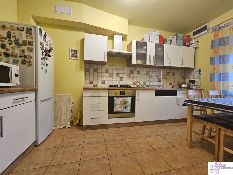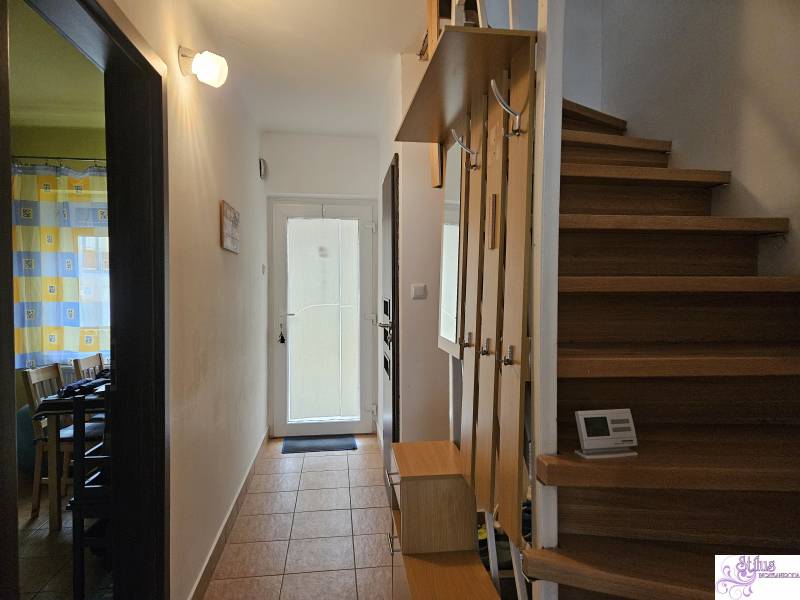 \"Deákvár kedvelt részén, csendes utcában...\"Vác Deákvár favorizált utcájában eladó egy 1986-ban épült 90 nm-es sorházi ingatlan, melyhez beépíthető tetőtér és 45 nm-es pince is tartozik.A földszinti részén előszoba, 23 nm-es teraszkapcsolatos nappali, konyha és mellékhelyiség, az emeleti részen a közlekedőkön kívül 2 hálószoba (23 és 13 nm-esek) és fürdőszoba található. A nagyobbik szobát kis ráfordítással ketté lehet választani, így a fenti részen 3 szoba kialakítható.A pince részen a kis méretű garázs mellett további 3 helyiség található, mely tárolás mellett akár barkácsolási célra is megfelelő.A ház rengeteg lehetőséget rejt magában. Akár nagy családosok részére is kiváló választás, hiszen további helyiségek könnyedén kialakíthatóak és a tetőtér is beépíthető.A ház melegéről gáz cirkó gondoskodik.Parkolni a ház alatti garázs mellett egy külön álló garázsban is lehet.A hátsó kis udvar könnyen fenntartható, sütögetésre, családi és baráti összejövetelek számára is tökéletes, de gyermekekek számára egy biztonságos játék birodalom is kilakítható hintával, homokozóval, pancsolóval.A ház közelében óvodák, iskolák, bevásárlási lehetőségek és a tömegközlekedés egyaránt megtalálható.